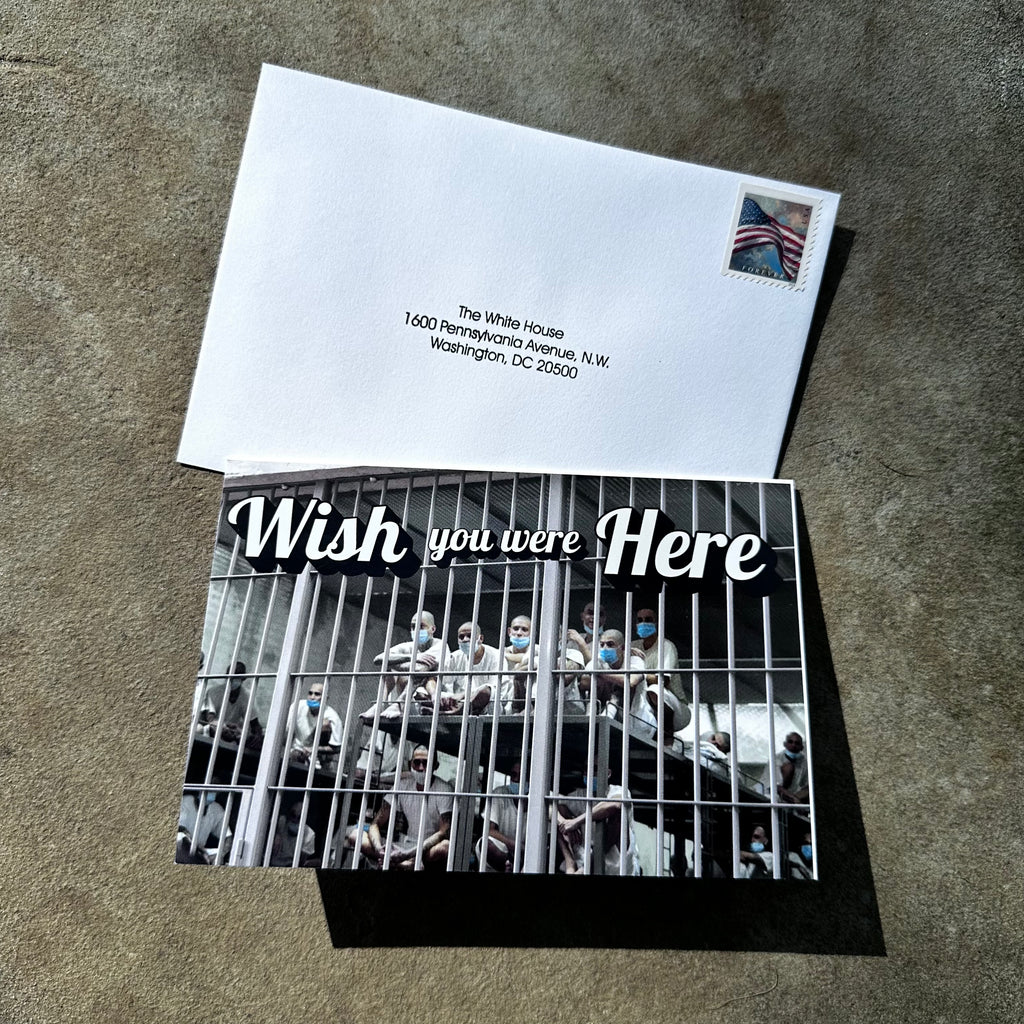 Let them know just how pissed off you really are. Remind this fascist felon exactly where he belongs with the “Wish You Were Here” Prison Postcard — the perfect mix of satire, civic engagement, and spicy stationery.